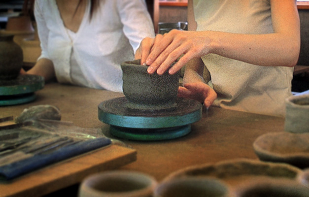 そんな天草陶磁器を気軽に触れて体験してもらおうと、湯の華でおすすめするのが『手びねり体験』、そして『絵付け体験』です。自らの手で土を練り、想い想いにカタチ作っていくこの体験では、どんな方でも童心に返って夢中になることができます。出来上がった作品は、後日ご自宅にお届けすることも出来ますので、ご夫婦やカップルでしずかに土を練るのもいいのではないでしょうか。